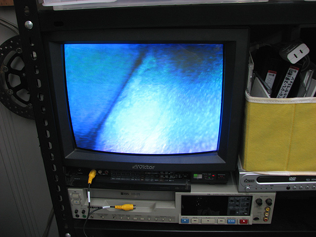 少しのサビでもエンジン不調の原因になるので、ファイバースコープで念入りにチェック。サビが完璧に取れていることを確認。