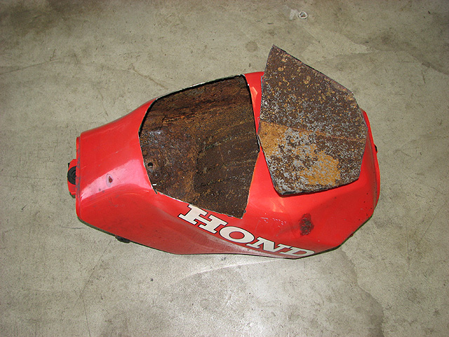 ホンマリVTのタンクのサビ取り完了。3ヶ月以上かかった。サビ取り剤6本もつかっちまった。