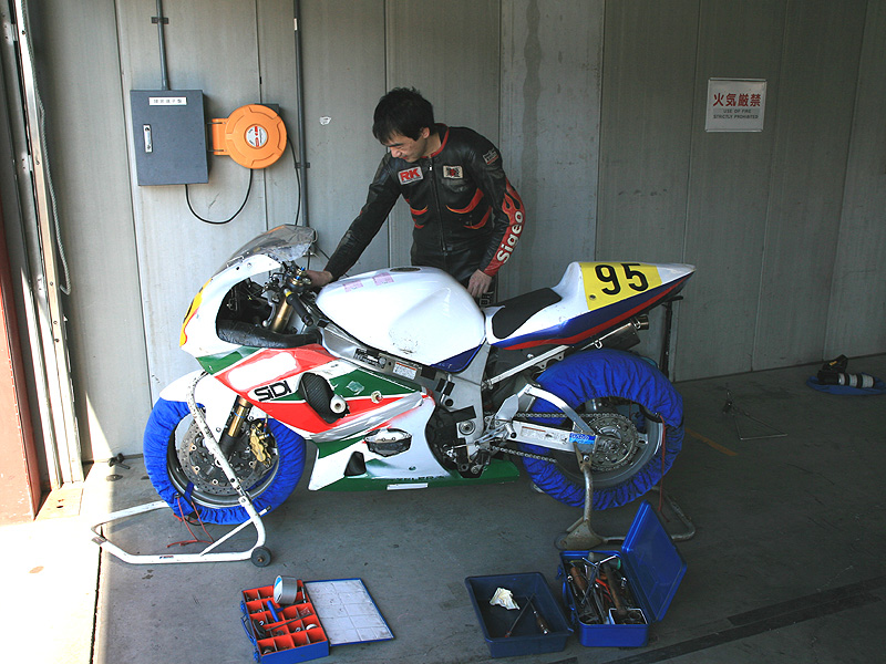 ぉお田さんはもて耐の時にデスったまま放置されていた『スーパーデス号』で走る。走行直前まで修理で大変だった。