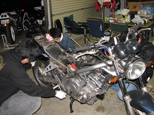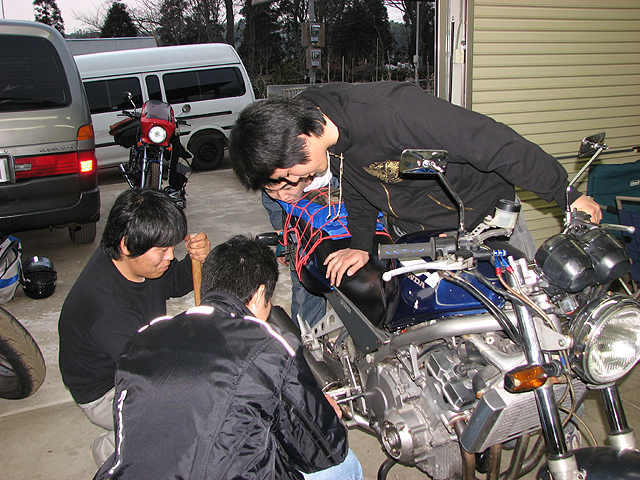 ガチャプィンの弟子のやまこう&弟君がCB−1とCB250RSで登場。CB−1のスイングアームがグラグラするので修理する。