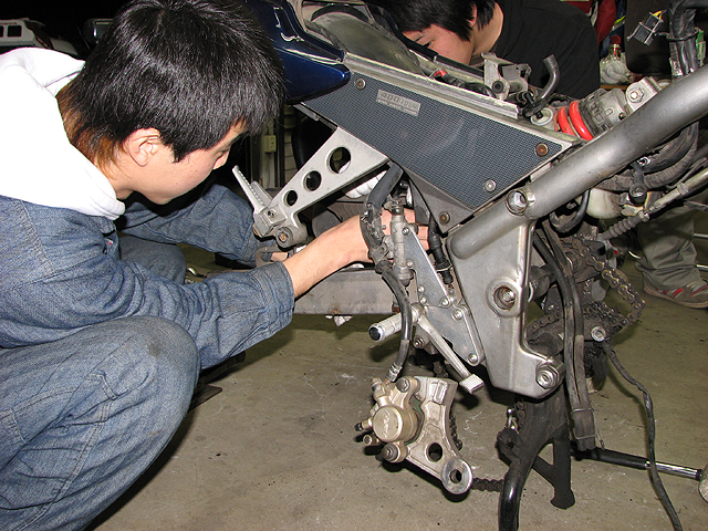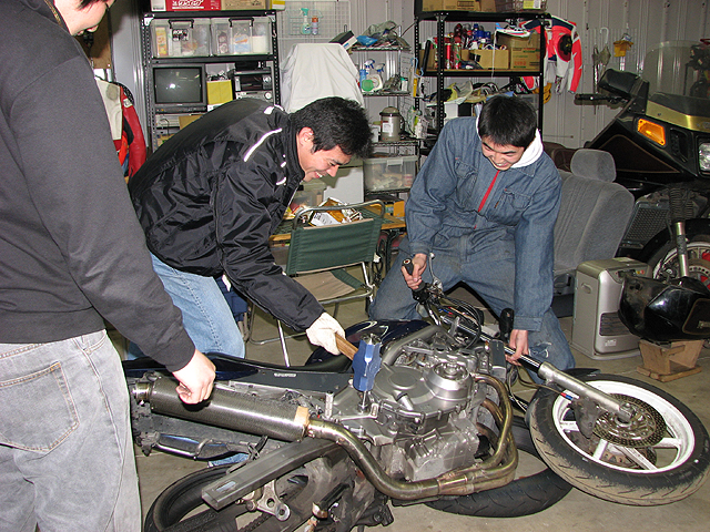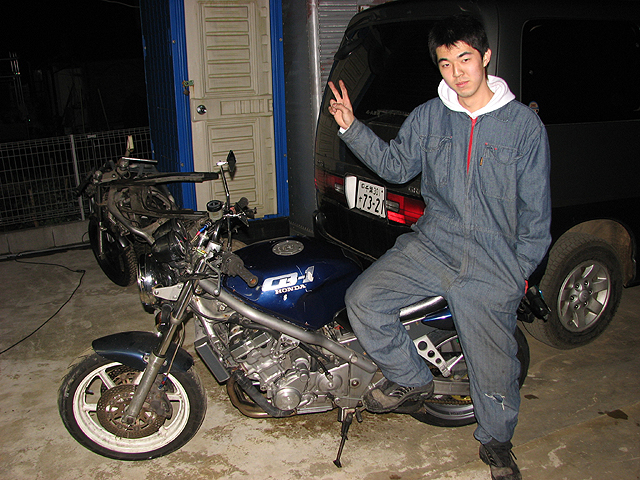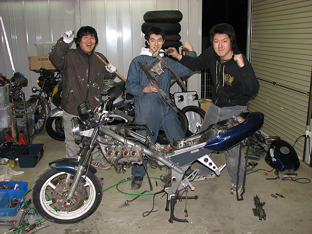 「やったースイングアーム外れたー!」とりあえず記念撮影