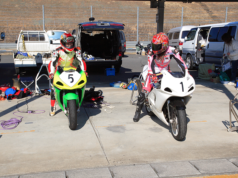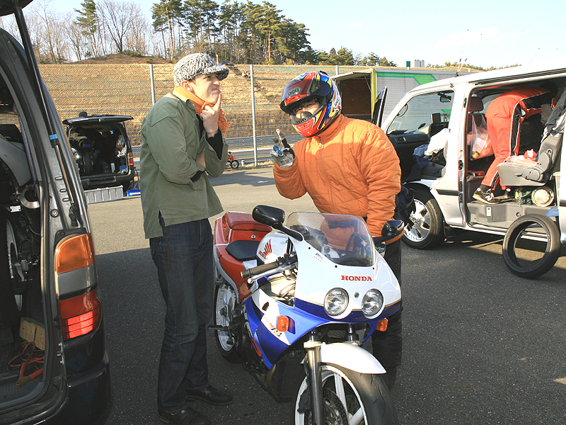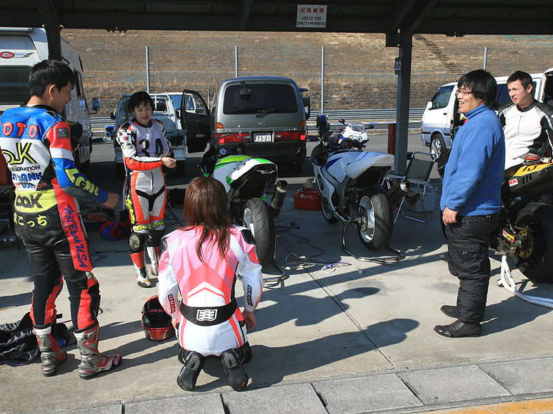 走行終了後の反省会。まこっち先生が後ろについてチェックしてくれていました。
