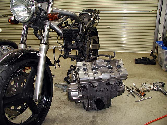 CB−1の改造車をもう一台作ることになった。エンジン降ろすのに2時間もかかっちゃった。