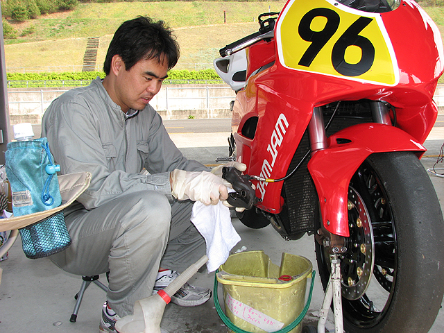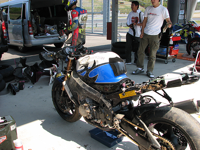 もて耐用のデス号で練習走行。体重130Kg(車重よりも重い)でサスがフルストローク。