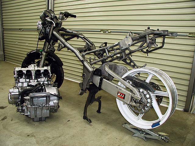 ノーマルスイングアームは鉄で重いので、MC21ガルアームに交換。ノーマルより26ミリ延長になる。