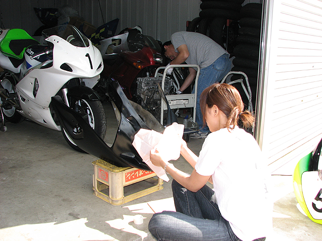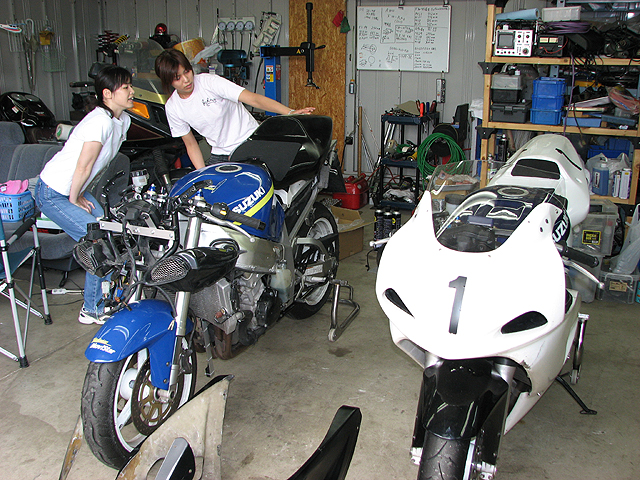 昼からガレージでバイクの整備。エミコが遊びに来た。