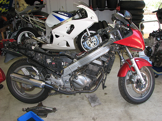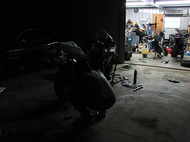 朝早く起きて、来週の日光チャレンジで使うZZR250を整備。