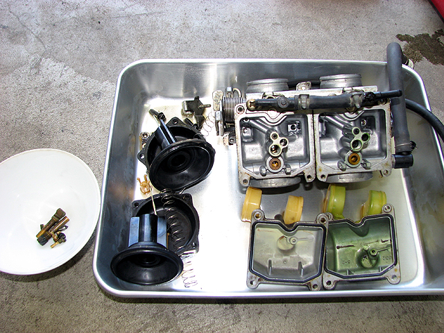 キャブレターを分解。ダイヤフラムが破けちゃってるよ〜(泣)やっべーどうしよう。