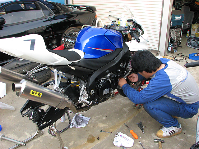 昼すぎにガチャプィンが07R1000の整備に来た。