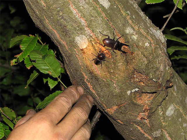 深夜になっても暑いので、近くの林にクワガタを取りに行く。