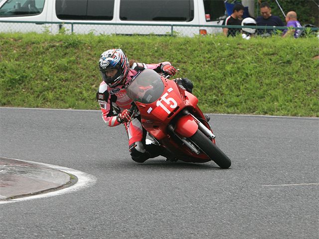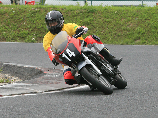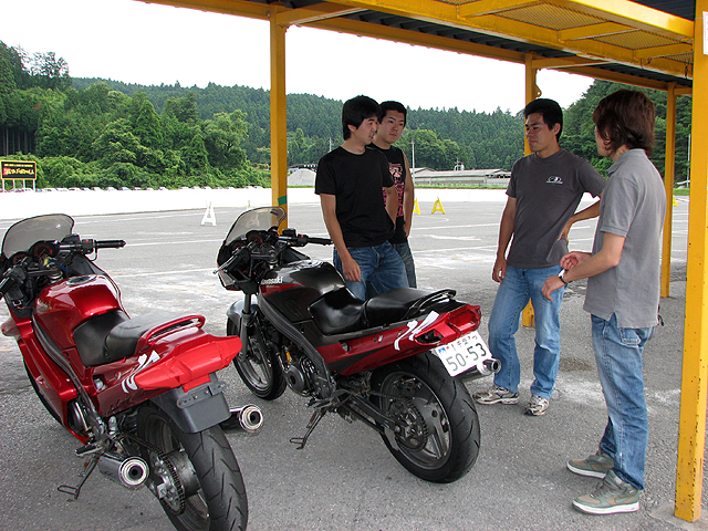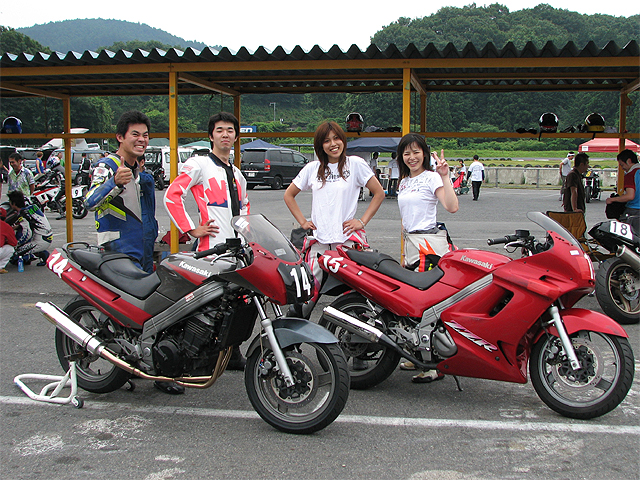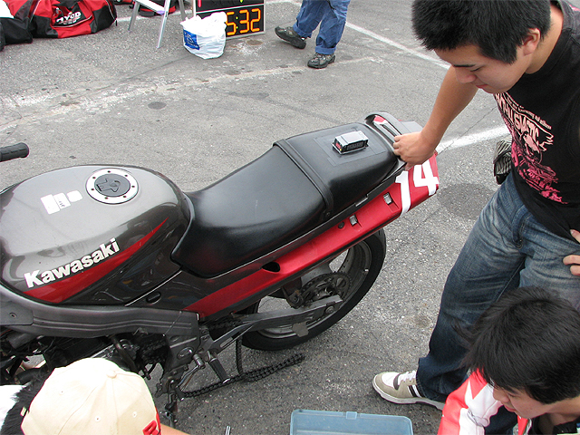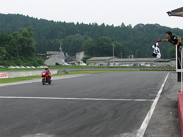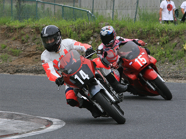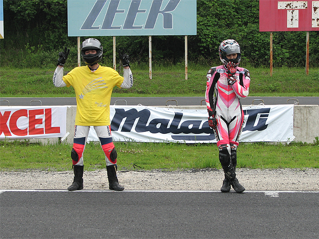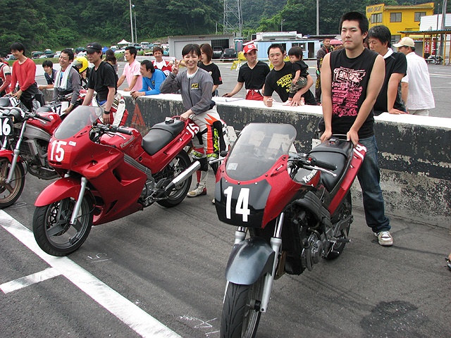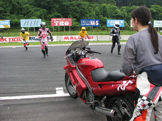 練習走行。山田シゲヲ(20歳)は初サーキットで初レース。実はぉお田さんの隠し子という噂も。