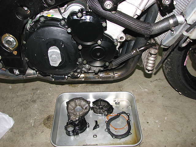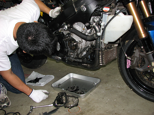 気を取り直して、某GSXRの修理。破損したカバーを外して内部に進入した泥を丁寧に除去。