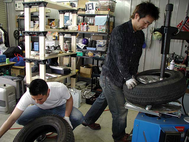 今日はテポ佐藤夫妻と木の下夫妻と6人でマザー牧場へ愛のタンデムツーリング。なぜか車のタイヤを外し始めるサトちゃん