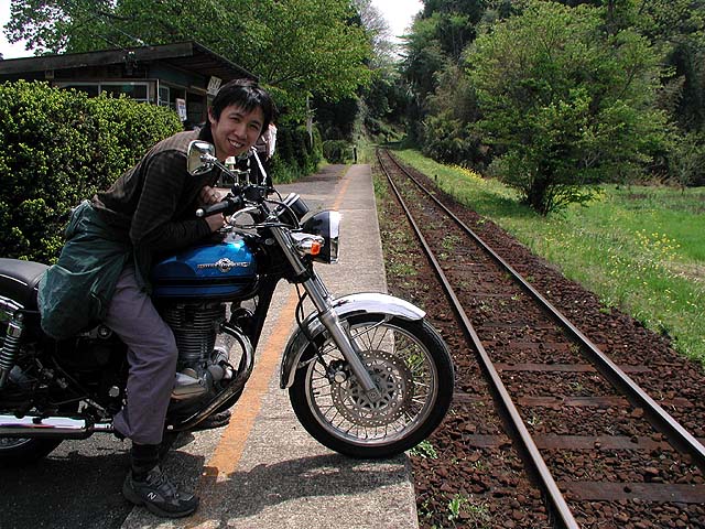 ここからバイクごと列車に乗って移動します。