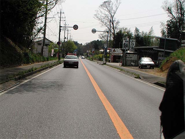 快調に走っていると、前方におまわりが。「げ、やべ〜」