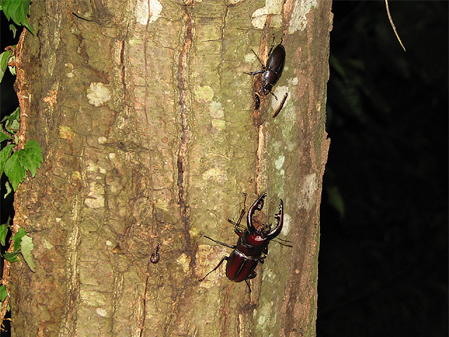 「わーいクワガタたくさんいる〜!」次々に捕獲。
