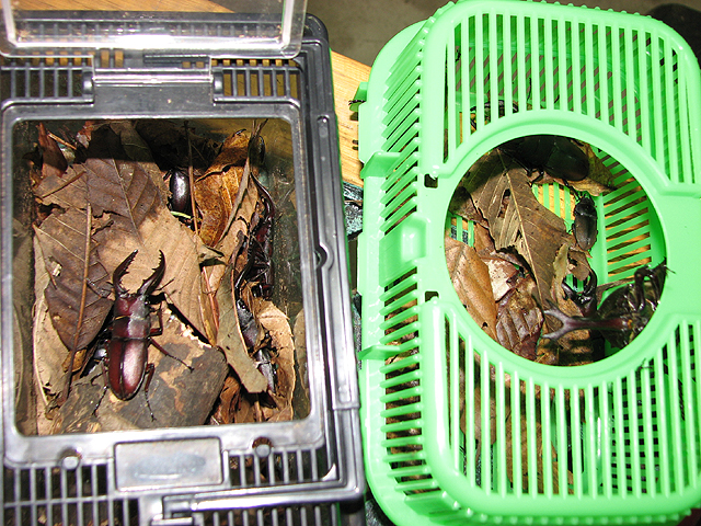 巨大ノコギリクワガタ10匹以上ゲット。他にコクワガタやカブトムシも。