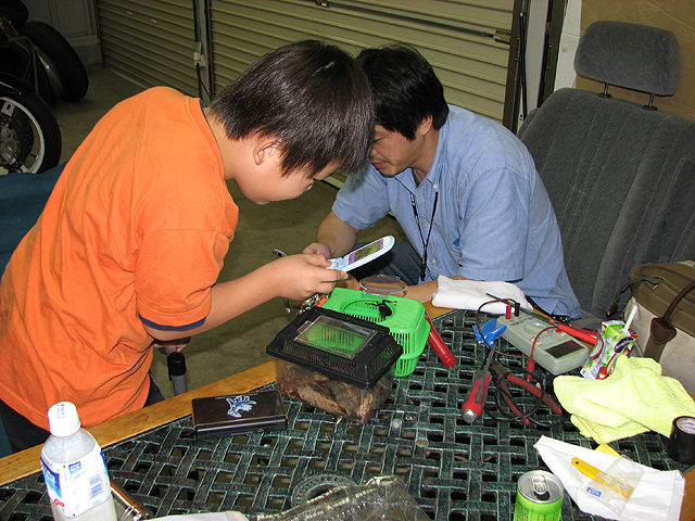 中嶋さん親子が遊びに来た。クワガタを捕りにガレージ脇の林へ。