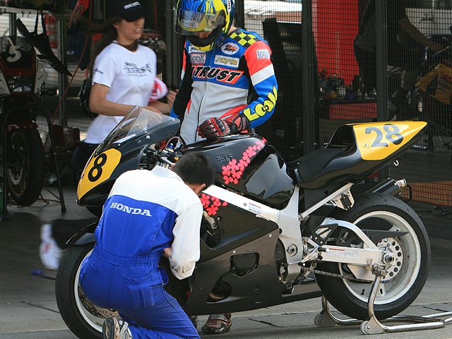 エミコとリカちゃんが2分20秒を切ったので、セッティングを変更する為まこっちがR750に試乗。