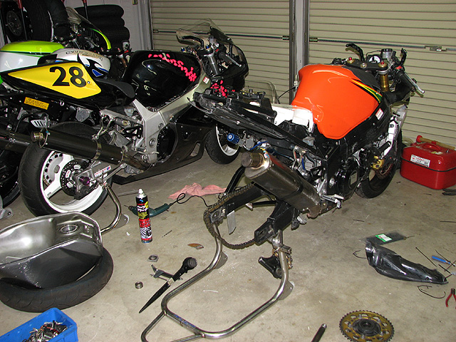 今日も整備地獄。くのいちR750は整備完了。