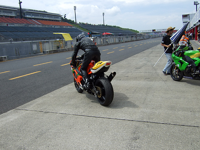 練習走行。広一郎がコースイン。