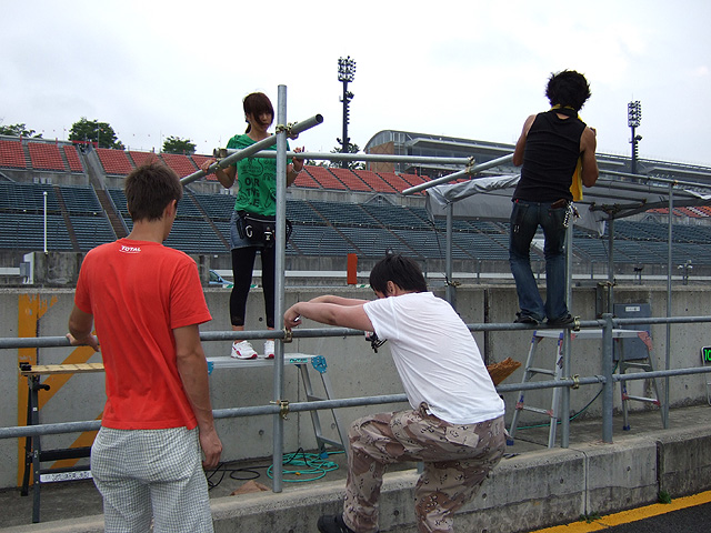 走行終了後サインエリアの準備。