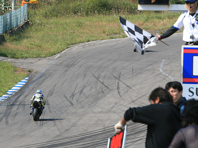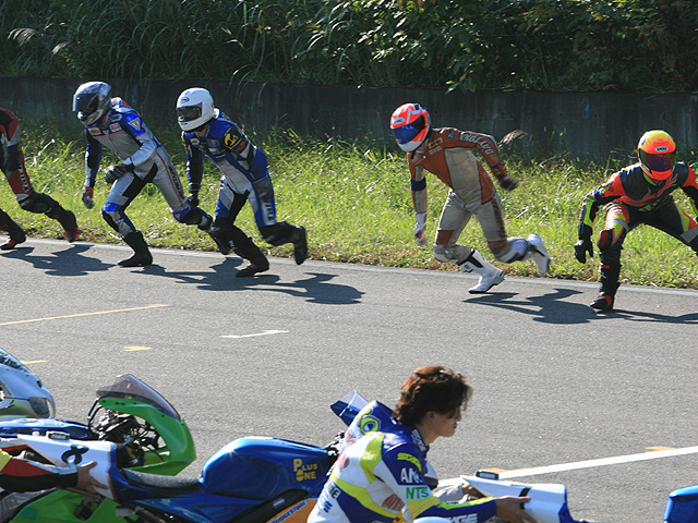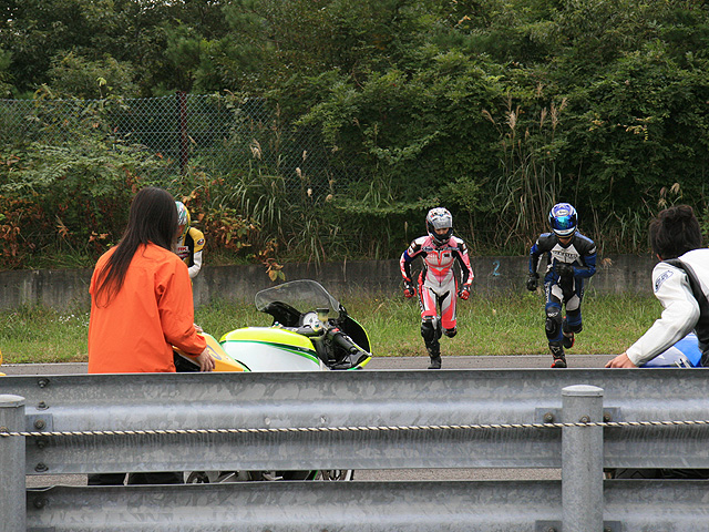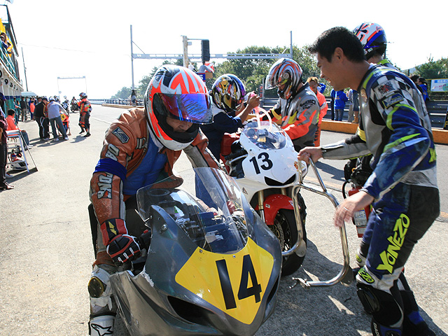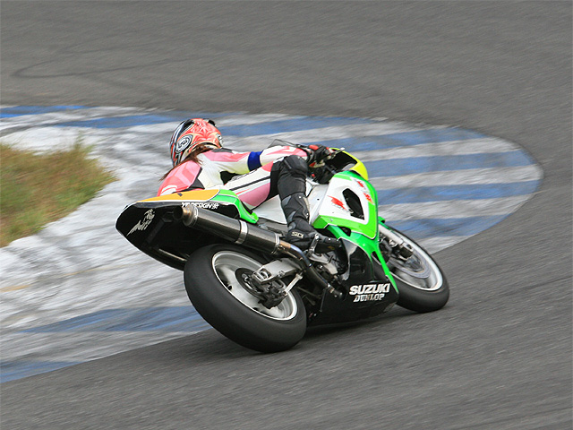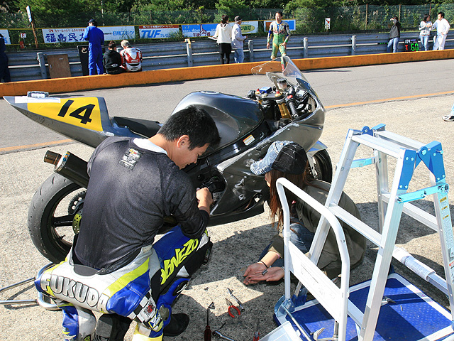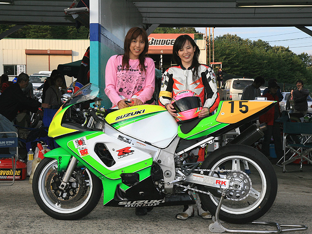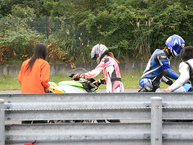 午後はフレッシュマン決勝。エミコ・なおみんがGSXR600で出場。