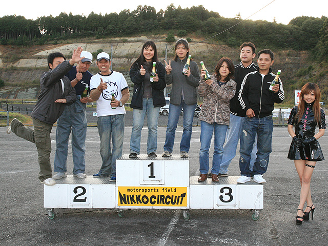表彰式。モトスペGPZが優勝。1位チェッカーのヤマコワークスはハンデ引いて2位。