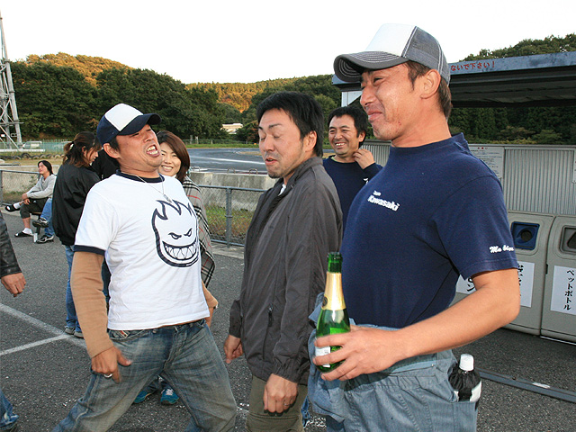 プクダの眼前で踊り狂うヤマコワークスの連中。今日は完敗だが・・・・来年はおぼえてろよ〜!(泣)