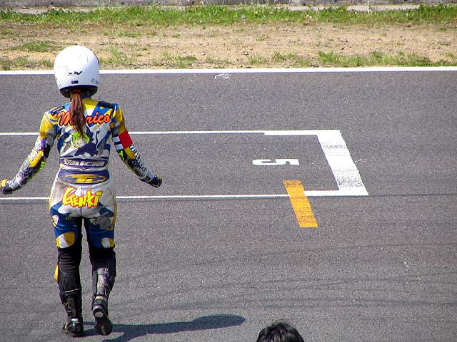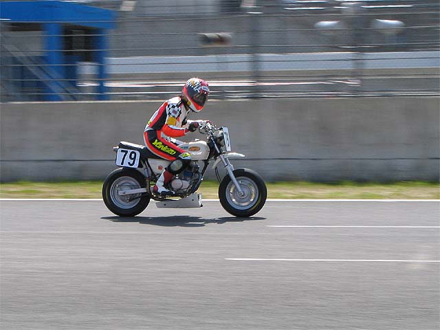 マフラー以外ノーマルなのでホームストレートは90キロ位。