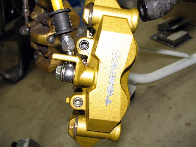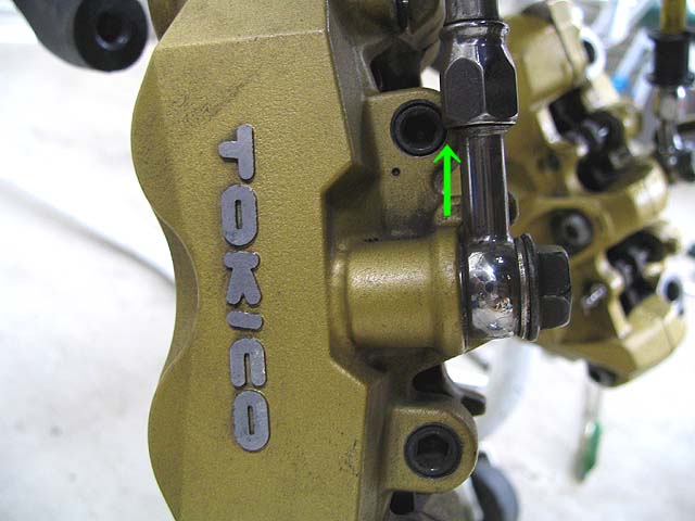 ブレーキパッドを変えようとしたら、ホースのバンジョーの金具が邪魔でパッドピンが抜けない!