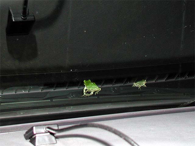 ガレージに向かって走っていたら、突然アオガエルが襲ってきた!
