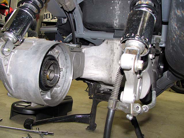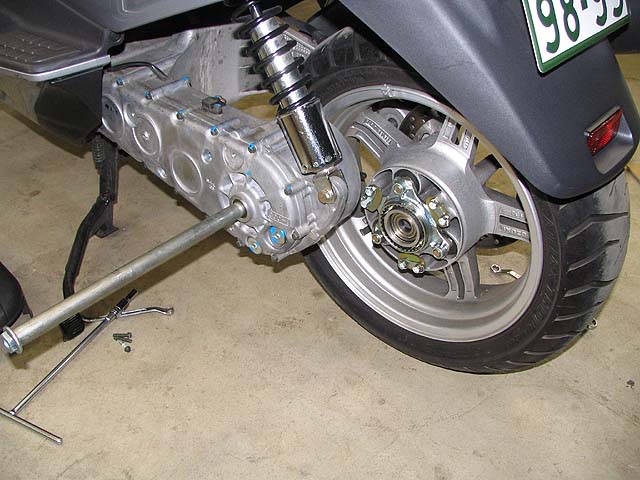 ビッグスクーターのタイヤ交換。リヤホイール外すの大変だった。